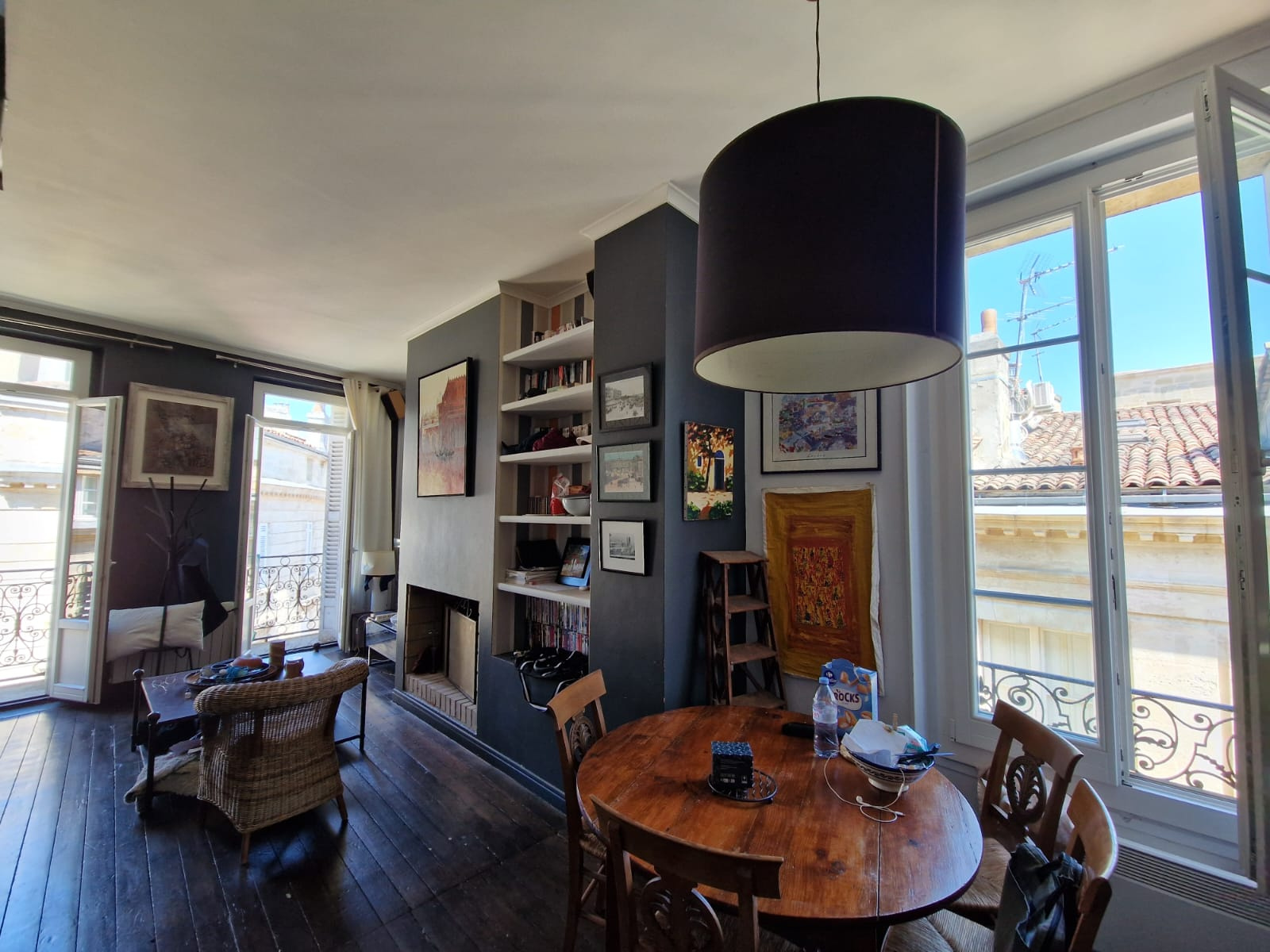 Au coeur de Bordeaux, dans l'hyper centre, à deux pas de la place de la Bourse et des quais, Le Cabinet BLEU vous propose ce bel appartement atypique avec vue sur les toits. Situé au dernier et 3ème étage sans ascenseur, il se compose d'une grande piéce de vie trés lumineuse avec cheminée, cuisine ouverte et deux balcons. Au dessus une chambre avec dressing salle de bains (baignoire et douche), puis une deuxieme pièce pouvant faire office de chambre d'appoint ou de bureau mais avec aussi sa salle d'eau. un wc. L'appartement est enregistré en meublé touristique donc se prete parfaitement a de la location saisonniere sans aucune limitation de jour. Bel immeuble pierre, belle vue sur les toits, rafraichissement à prévoir. commerces et transport au pieds de l'immeuble.