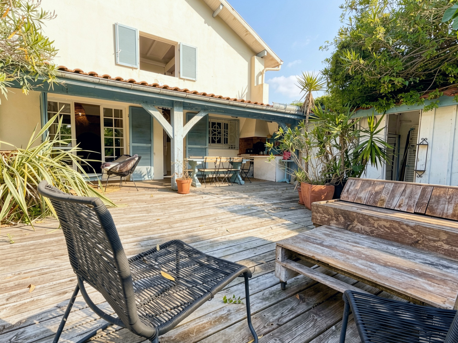 Le Cabinet BLEU vous présente : une maison qui respire les vacances et les influences orientales. Maison à étage, au calme, seule sur sa parcelle, en plein centre de Capbreton. Pas de voisin mitoyen, pas de vis-à-vis sur le jardin. Le rez-de-chaussée comprend une chambre, le séjour est spacieux, bien orienté, agréable à vivre et donne sur la grande terrasse. Une partie est couverte avec cuisine d'été, grande table et coin salon abrité. L’étage regroupe trois autres chambres dont une grande suite avec baignoire et une salle d'eau partagée avec douche à l'italienne. Côté chauffage : insert à bois, radiateurs électriques et climatisation. Le centre de Capbreton est accessible à pied : marché, commerces, restaurants. L’océan est à quelques minutes à pied ou à vélo.